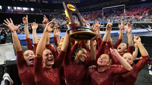 FORT WORTH, Texas – Oklahoma ganó su séptimo título nacional el sábado, con actuaciones estelares durante todo el día desde Faith Torrez, Jordan Bowers y Audrey Davis. Los Sooners ahora están empatados con UCLA para los terceros títulos más del equipo en la historia de la NCAA.