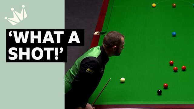 Mira como un impresionado Chris Wakelin mira mientras Mark Allen hace un gran tiro durante su descanso de 147 durante su segunda ronda en el Campeonato Mundial de Snooker.
