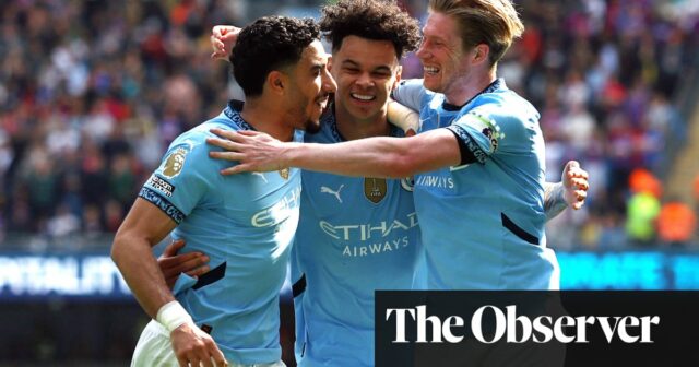 Débil fue una caracterización adecuada, también, de City para los objetivos de la primera mitad de Palace, cada uno debido a la defensa de Powderpuff. Primero, Daniel Muñoz encontró un acre de césped a lo largo de la derecha: golpeó a Ismaïla Sarr, la cruz retirada de Ederson, y Eberechi Eze se volvió a casa. Guardiola quería fuera de juego, pero el sistema semiautomático, en juego por primera vez este fin de semana, gobernó bien.