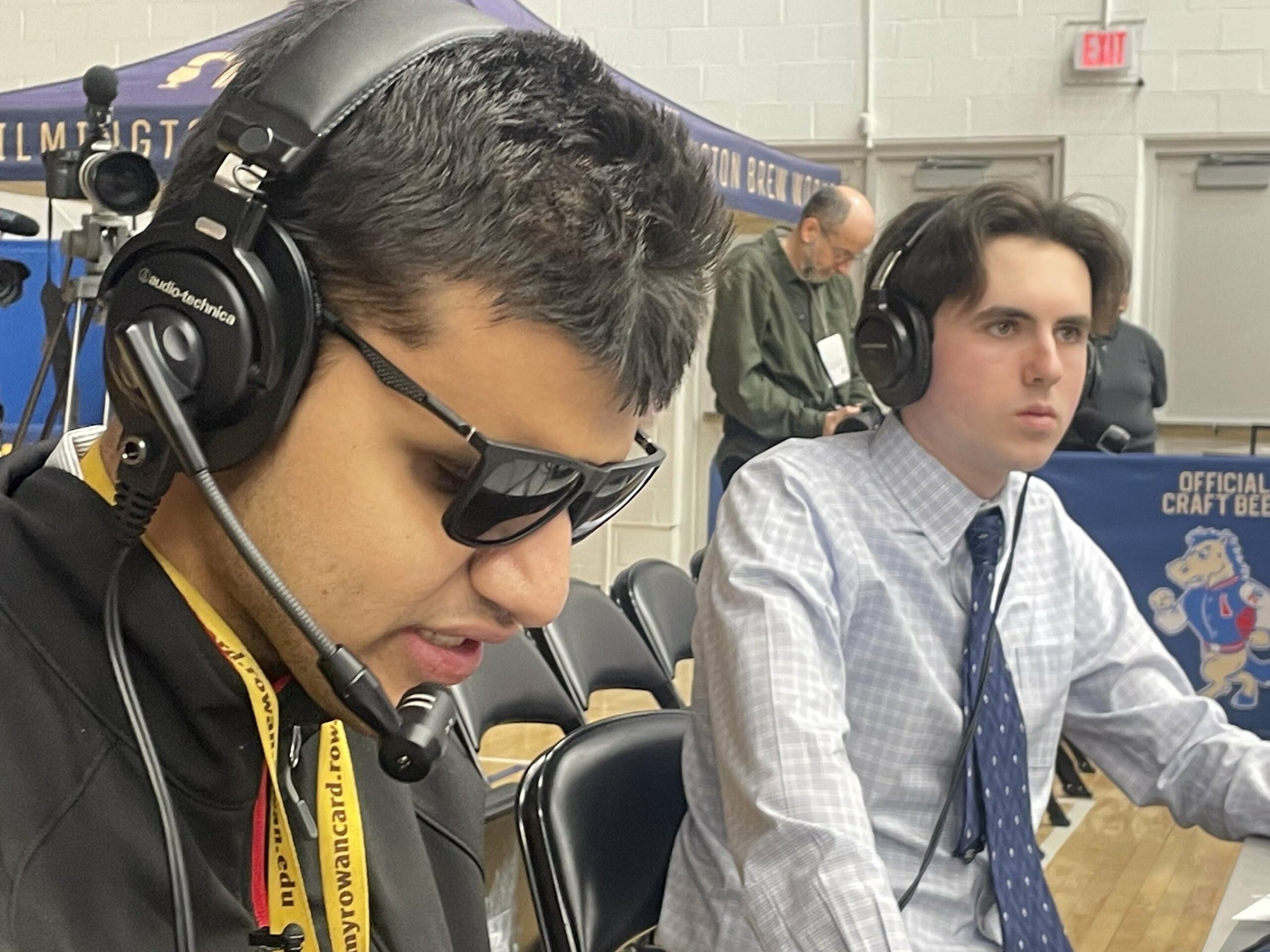 Y así es como va durante el juego. El locutor de juego por juego Owen Colwell les dice a los oyentes sobre las canastas, las fallas, los rebotes, las faltas, la puntuación y más.