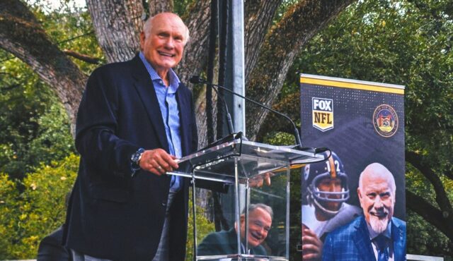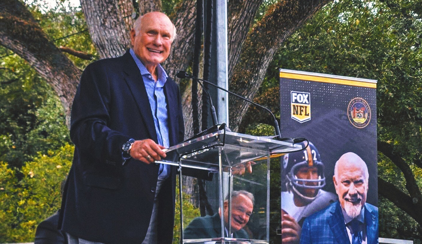 “Uno de los valores centrales de Tulane es la excelencia inspiradora”, dijo Fitts, presentando a Bradshaw con un casco de fútbol plateado de Wave Green Wave. “Y Terry Bradshaw encarna este valor. Su carrera es un ejemplo perfecto de lo que se puede lograr cuando el talento está emparejado con pasión, dedicación y trabajo duro … Literalmente es difícil imaginar juegos de la NFL del domingo sin su visión y su gran personalidad “