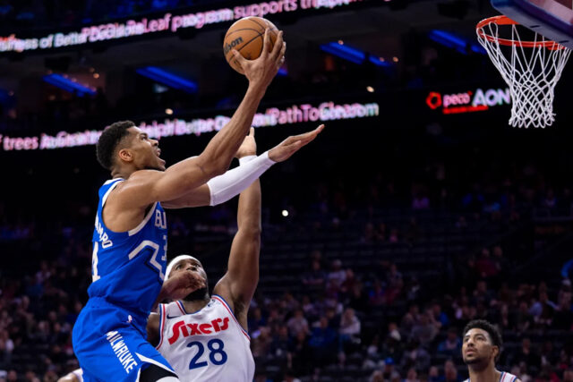 La estrella de los Milwaukee Bucks se convirtió en el primer jugador en la historia de la NBA en publicar 35 puntos, 20 asistencias y 15 rebotes en un solo juego el jueves, llenando la hoja de estadísticas contra los Philadelphia 76ers de mano corta.