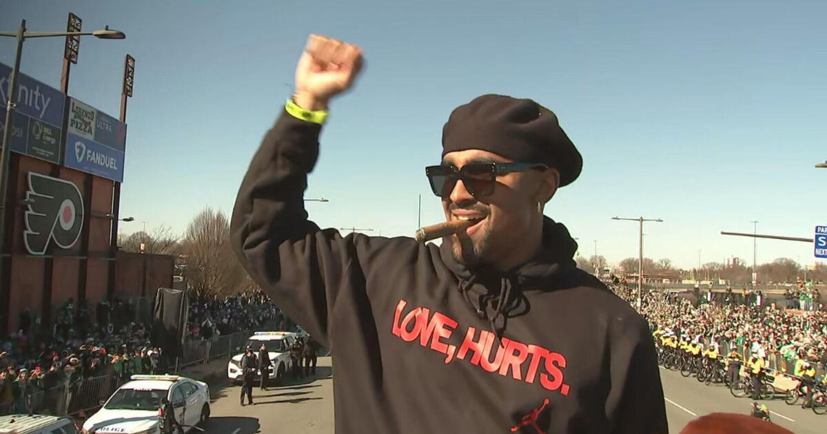 El amor ciertamente no duele en Filadelfia el día de San Valentín, pero ¿quién no aprecia un buen juego de palabras? Super Bowl Lix MVP Jalen Hurts aprovechó la oportunidad para arrojar luz sobre su Fundación con una sudadera con capucha de “amor, duele” durante el Desfile de las Águilas.