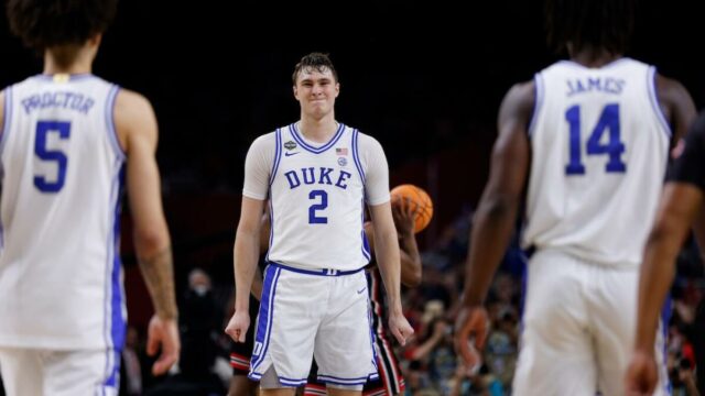 La inexperiencia de Duke jugó un factor importante en su colapso contra un equipo de Houston cuya edad promedio inicial de cinco está al norte de 22. Flagg y Knueppel se combinaron para 43 puntos y 14 rebotes. Necesitaban dos o cuatro más, pero Houston no lo tenía. Scheyer creó una obra de teatro en la penúltima posesión de Duke que dejó mucho que desear: una caída de 15 pies de Flagg, con J'wan Roberts recibiendo mucho brazo y mano en la cara de Flagg. El tiro fue corto por unas pocas pulgadas, y la temporada de Duke se derrumbó cuando la pelota cayó en manos de Mylik Wilson con ocho segundos para el final.