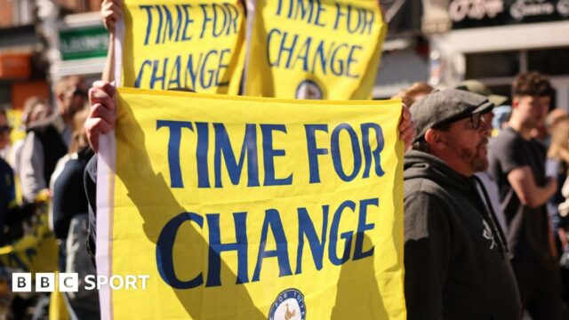“Tiempo para el cambio”, fue el mensaje en las banderas, mientras que algunas bufandas dijeron '¡suficiente es suficiente, enic fuera! “.