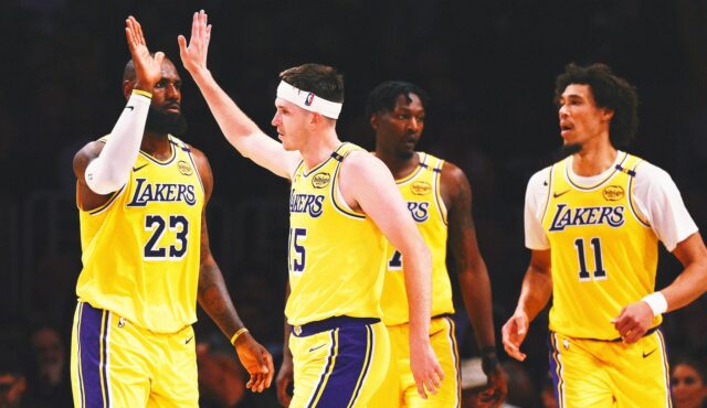 Los Ángeles tomó una ventaja de 19 puntos en el primer cuarto del Juego 2 con 16 puntos de Doncic, quien explotó aislaciones en el centro Rudy Gobert. El primer triple de James puso a los Lakers 43-21 en el segundo cuarto.