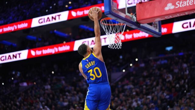 Hield lo pasó rápidamente a Curry por lo que generalmente sería una bandeja separatista. Excepto, por primera vez desde 2019, Curry arrojó una volcada con una sola mano cuando los fanáticos de Golden State en Wells Fargo Center rugieron.