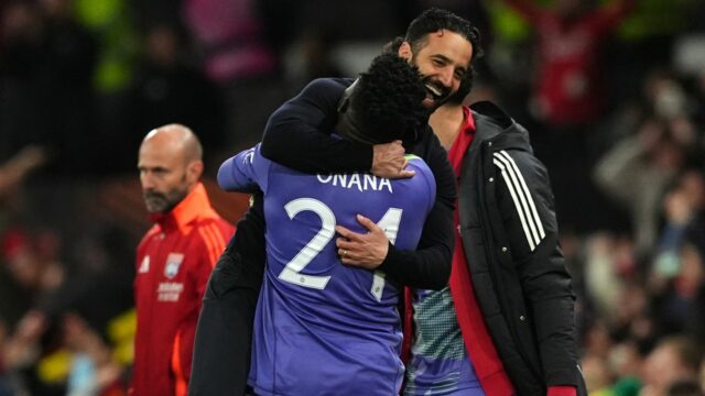 Andre Onana levanta a Ruben Amorim en celebración al difunto ganador de Harry Maguire
