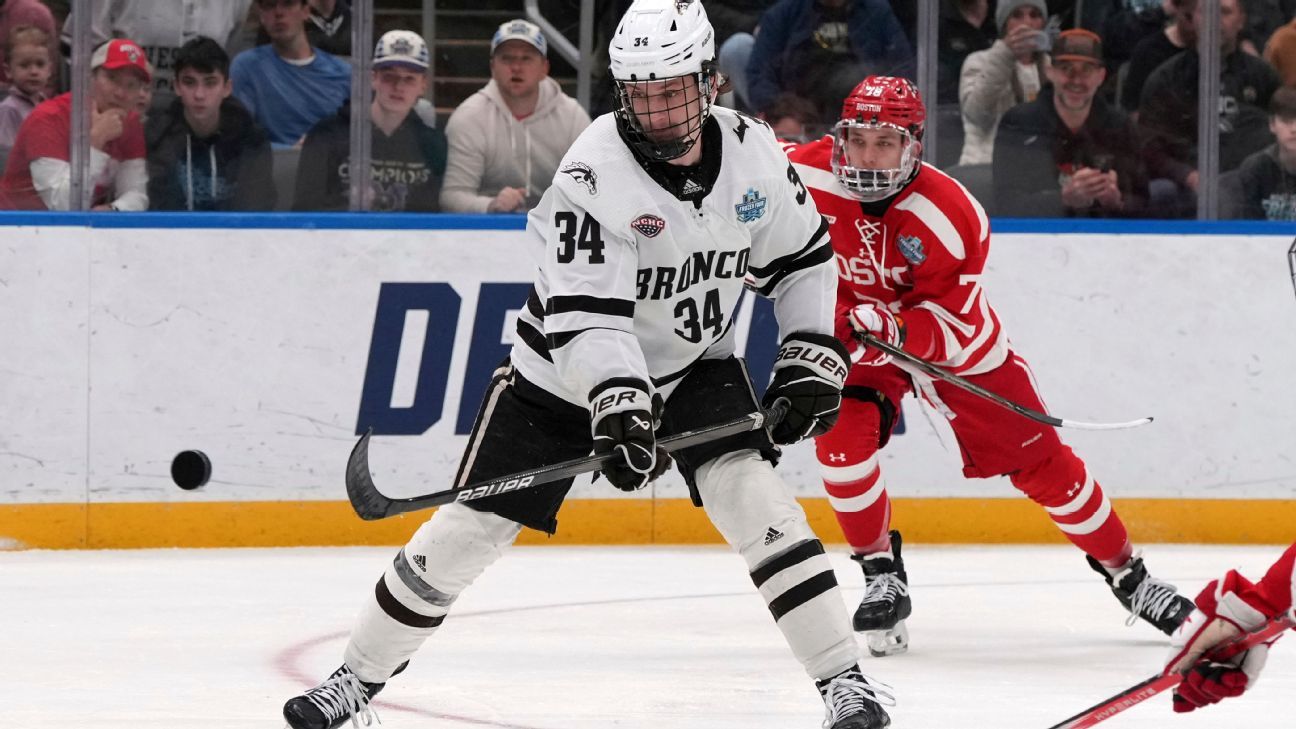 El Frozen Four de 2025 hombres se reduce a dos equipos: el campeón de NCHC Western Michigan Broncos y los Boston University Terriers of Hockey East.