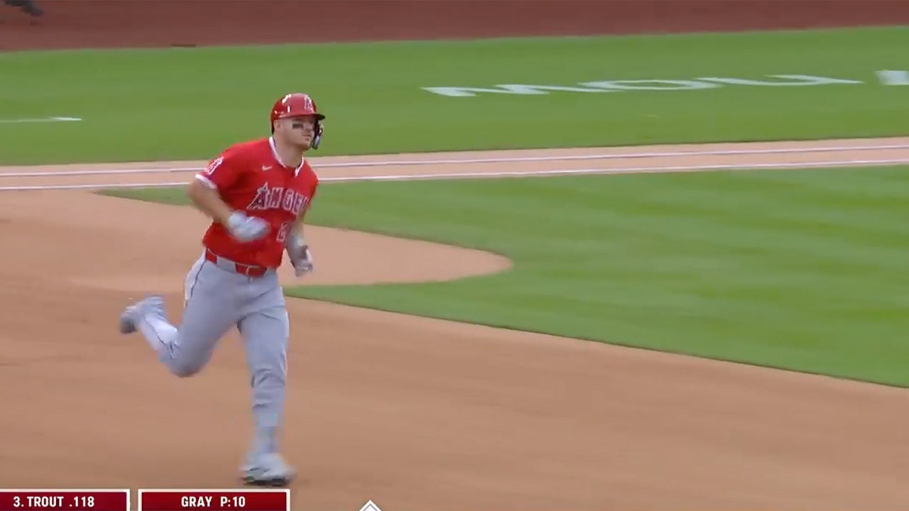 Mike Trout de Los Angeles Angels rompió su primer jonrón de la temporada, un tiro en solitario contra los Cardenales de St. Louis.