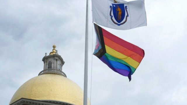 Una bandera de orgullo vuela cerca de la Casa del Estado de Massachusetts. Steven Senne/AP