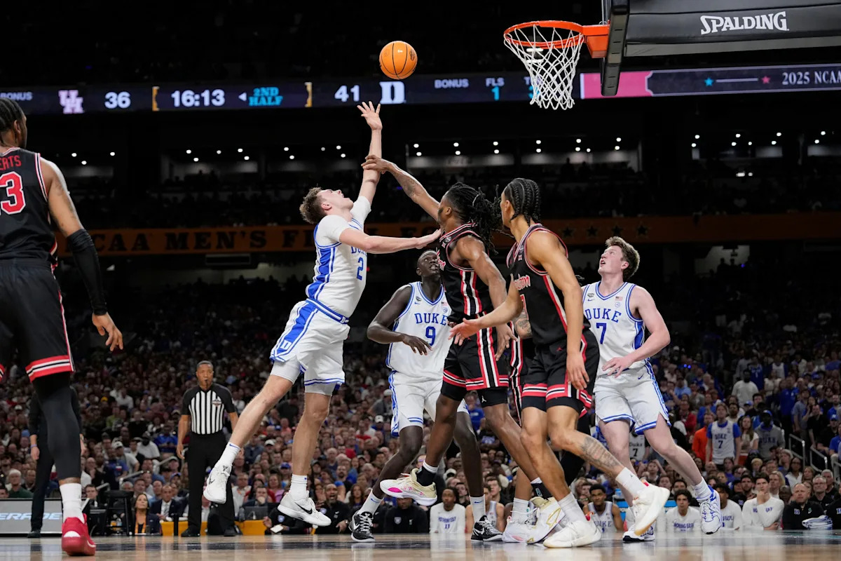 Duke parecía tener el control con una ventaja de 67-61 y posesión de la pelota con 1:14 restantes. Pero una bandeja de Kon Knueppel perdida condujo a un triple de Emmanuel Sharp en el otro extremo que redujo la ventaja de Duke a 67-64 con 33 segundos restantes. Houston luego forzó una facturación en un pase de entrada debajo de su canasta, lo que llevó a una volcada Joseph Tugler que redujo la ventaja de Duke a 67-66.