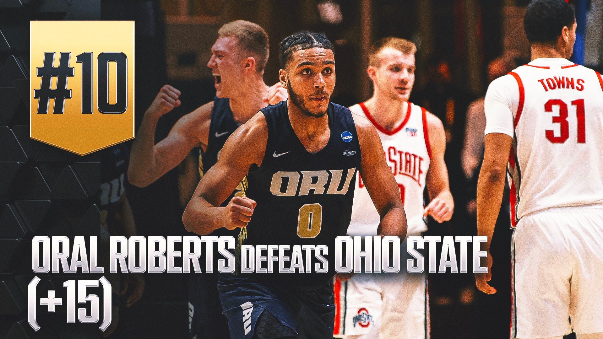 Comenzando la lista, las 15 ° Eagles de Golden Sembrados derribaron el estado de Ohio de 2 semillas en la ronda de 64 a pesar de ser desvalidos de 15 puntos. El juego fue un thriller absoluto, con Oral Roberts buscando una victoria por 75-72 en tiempo extra. En ese momento, eran solo la novena 15 semillas en ganar un juego de primera ronda. Fueron liderados por Max Abmas y Kevin Obanor, quienes combinaron por 59 puntos en el malestar. Oral Roberts llegaría a The Sweet 16, perdiendo por dos puntos ante Arkansas en esa ronda.