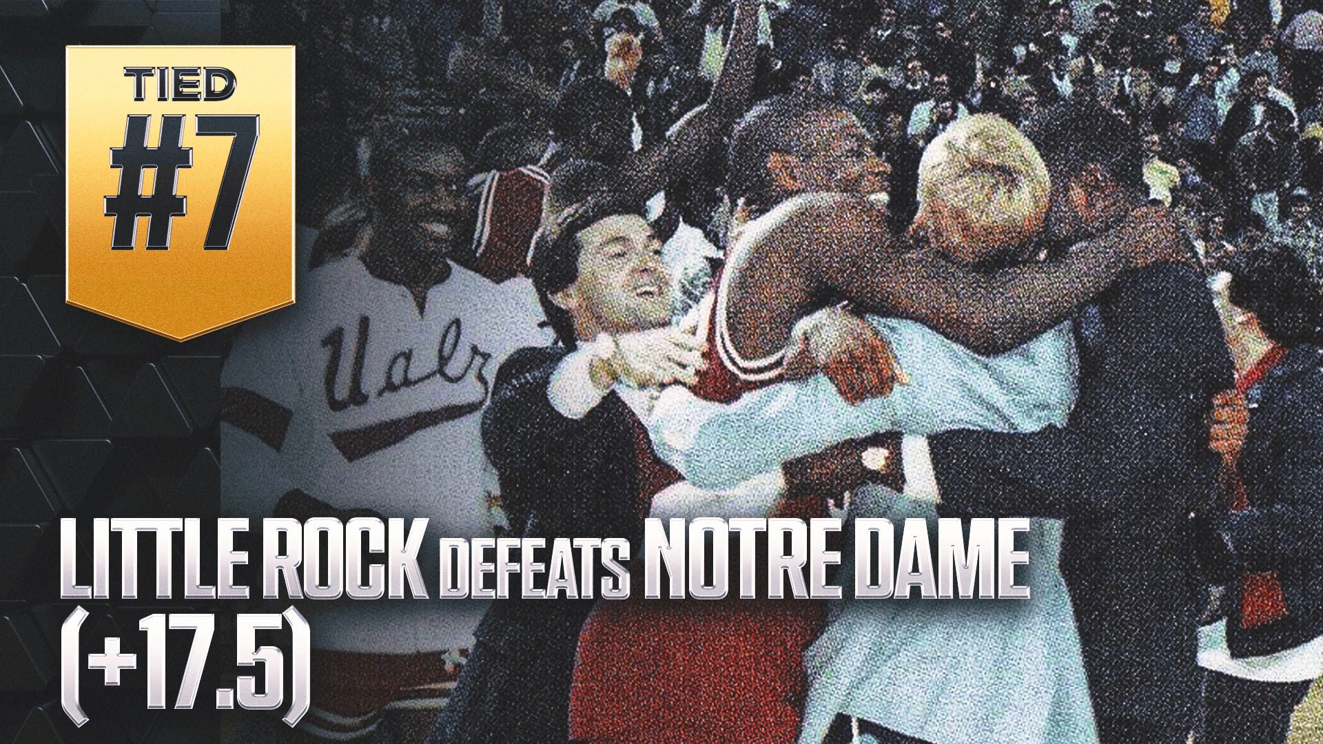 En solo el segundo año del formato de 64 equipos, Little Rock derribó a un equipo de 23-5 Notre Dame en la primera ronda, convirtiéndose en el segundo 14 semillas en derribar un 3 semillas. Michael Clarke, Myron Jackson y Pete Myers anotaron más de 20 puntos para Little Rock en una victoria de 90-83. Casualmente, los primeros 14 semillas en hacerlo también llegaron en el torneo de la NCAA de 1986, con el estado de Cleveland derribando a Indiana como perdedores de 6.5 puntos. Little Rock perdería ante NC State en un juego de tiempo extra en la siguiente ronda.