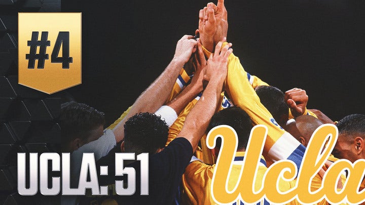 Cronin llevó a uno de los mejores equipos de UCLA de memoria reciente a la Final Four en 2021, pero UCLA ha pasado por cinco entrenadores diferentes desde que ganó su último campeonato nacional, en 1995. Tyus Edney y Ed O'Bannon fueron las estrellas de ese grupo, pero los Bruins tienen parte de la historia más profunda de cualquier programa. Han ganado 11 campeonatos nacionales, tres de los cuales vinieron con Lew Alcindor (Kareem Abdul-Jabbar) y dos de los cuales vinieron con Bill Walton. Las estrellas recientes para jugar en UCLA incluyen Russell Westbrook, Kevin Love y el campeón de la NBA de 2024 Jrue Holiday.