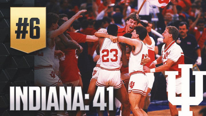 Los Hoosiers fueron pilares de torneo durante el mandato de 29 años de Bob Knight como entrenador en jefe de Indiana, yendo a bailar en todas menos cuatro de esas temporadas. Indiana ganó tres de sus cinco campeonatos nacionales en ese tramo, con dos de esas victorias del título previas al tiempo de Knight como entrenador en jefe. También fue a cinco finales cuatro y ocho ochos de élite durante el mandato de Knight