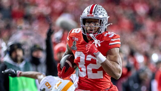 El corredor Treveyon Henderson ayudó a Ohio State a ganar el título nacional en enero y visitará un equipo cercano como parte de su proceso previo al draft.