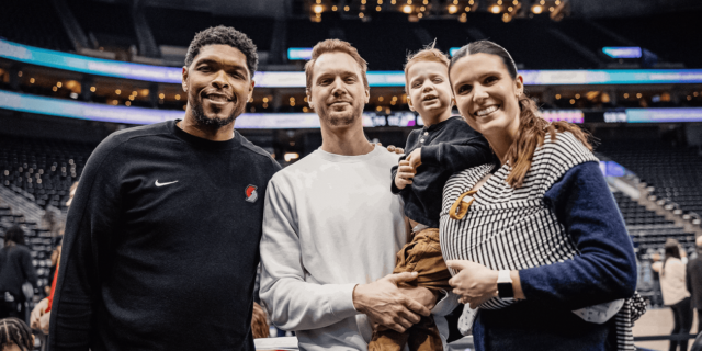 (Foto superior de Ryan Gomes, Danny Berger y su familia cortesía de Portland Trail Blazers)