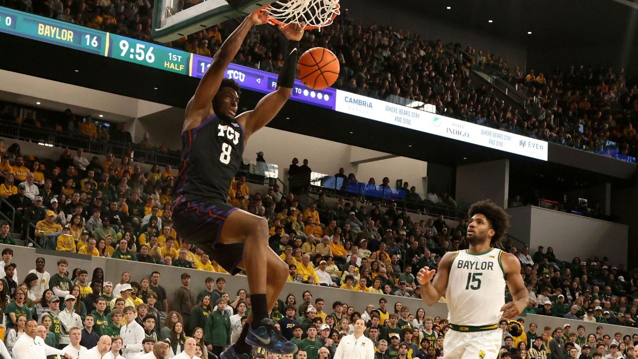 Udeh tuvo un robo y luego recuperó el balón de David Punch para una enfática volcada a dos manos con 8:47 por jugarse que coronó una racha de 7-0 y puso a TCU dentro de 56-54.