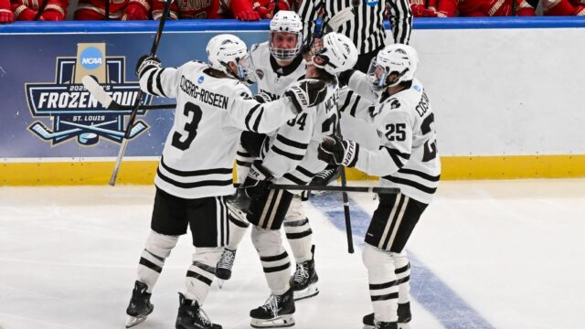 Jared Wright, con el gol de empate con 2:39 restantes en la regulación, y Aidan Thompson anotó goles, y Davis tuvo 44 salvamentos para Denver (31-12-1). Los Pioneros, que han ganado un torneo líder de 10 títulos y dos en los tres años anteriores, fallaron en su intento de convertirse en el noveno equipo de la NCAA en repetir como campeón, y primero desde Minnesota-Duluth en 2018 y 2019.