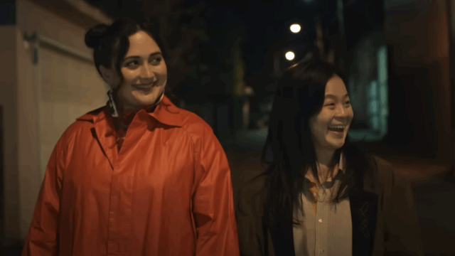 En un hilarante giro de los acontecimientos, Angela en realidad queda embarazada del bebé de Chris durante una noche borracha, todo el procedimiento de FIV de Lee es exitoso. Ah, y Chris se estrella en la boda legal de Min y Angela para casarse con él (después de tener una ceremonia tradicional donde a Star Wars la broma se abrió paso totalmente en). Cuando hablamos con Gladstone, Tran y Han, el nominado al Oscar dijo esto sobre sus pensamientos sobre el final: