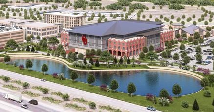 Representación de la Universidad de North Park Arena y el Distrito de Entretenimiento Associado propuestos para ser construidos a lo largo de la Interestatal 35 entre Rock Creek Road y Corporate Center Drive en North Norman.
