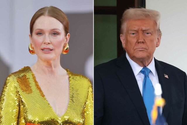 Julianne Moore está hablando después de enterarse de que la administración del presidente Donald Trump ha prohibido el libro de sus hijos sobre la autoaceptación en las escuelas administradas por el pentágono en todo el mundo.