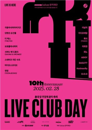 Live Club Day otorgará a los asistentes a los conciertos acceso a actuaciones de una variedad de artistas independientes en diferentes lugares en el área de Seúl en el área de Hongdae con un solo boleto. Este año marca el décimo aniversario del evento.