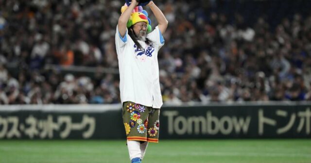 Una nueva colección estará disponible el 28 de abril durante Noche de patrimonio japonés En Dodger Stadium y Dodger Clubhouse Store, solo se puede comprar en línea. Murakami, de 63 años, tirará el primer lanzamiento ceremonial como lo hizo Antes de una exposición entre los Dodgers y los Gigantes de Yomiuri en el Tokio Dome el 15 de marzo.
