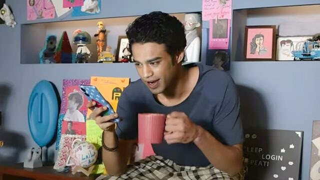 Constantemente revisando su éxito y respuesta en línea, el hombre no puede mirar hacia otro lado de la pantalla incluso cuando está comiendo con su hermana mayor (Rasika Duggal) y revela sus corbatas tensas con sus personas que desaprueban. La dependencia de Pratyush golpea cerca de casa.