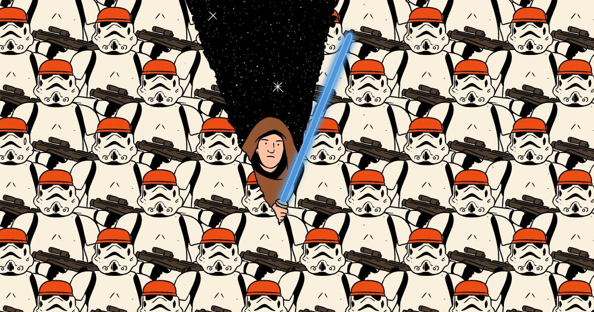 “Star Wars” termina con la victoria y las medallas, pero el lado oscuro rara vez es golpeado de frente. Durante sus casi dos docenas de películas y programas de televisión, la batalla entre el imperio formidable y la resistencia desaliñada se ha convertido solo en una metáfora de la crisis actual del día, sino una guía moral de cómo y cuándo, y cuándo, y cuándo no – luchar.