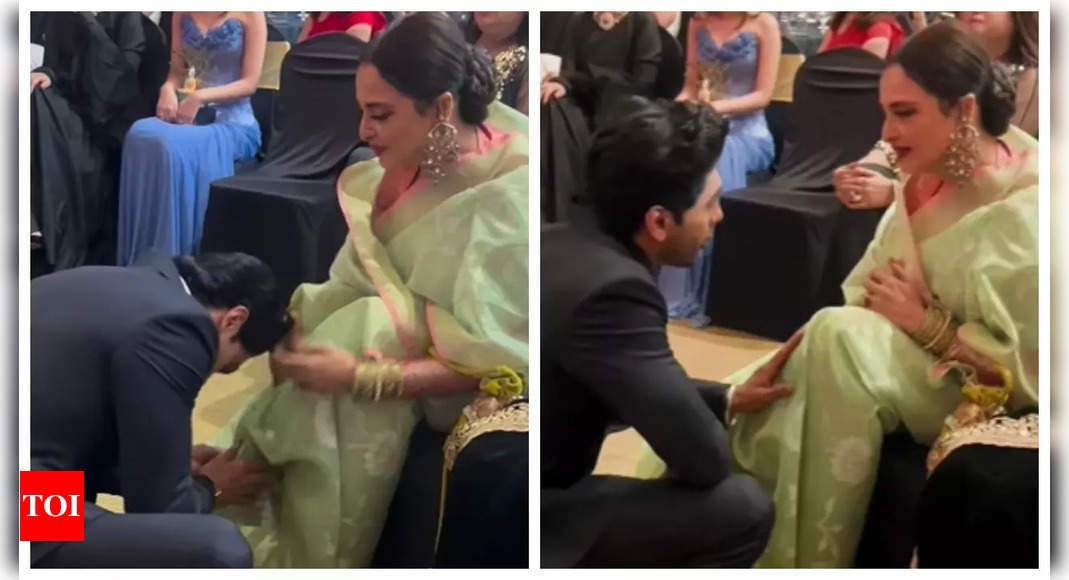 Adecuado a la perfección con un traje gris, el actor cortó un aspecto afilado y sofisticado cuando golpeó la alfombra roja. Una vez dentro, un video que hace las rondas en línea ve que el trozo se inclina para tocar los pies del veterano actor Rekha como un signo de respeto y buscar sus bendiciones. Rekha le tocó la cabeza con amor y se dedicó a una conversación que tenía espectadores sonriendo de oreja a oreja.