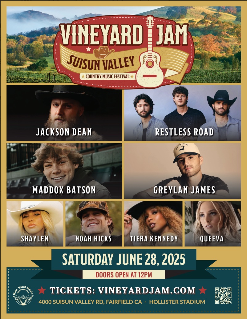 El primer Festival de Música Country de Vineyard Jam se llevará a cabo este junio en Fairfield con el cabeza de cartel Jackson Dean.