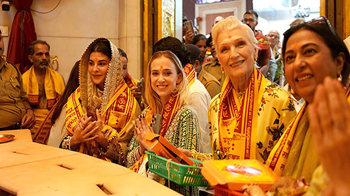 Jacqueline Fernández fue visto recientemente ofreciendo oraciones en el Templo Siddhivinayak de Mumbai junto con Maye Musk, madre del dueño de Tesla, Elon Musk.
