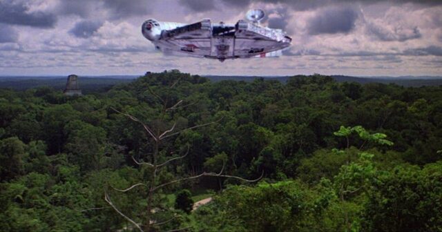 Filmado en el lugar en las antiguas ruinas mayas en Tikal, Guatemala, las llamativas imágenes de Yavin 4 son una parte icónica de Star Wars. Esta es la base desde la cual la alianza rebelde lanza su desesperado ataque para destruir la estrella de la muerte en Una nueva esperanza. También es el lugar donde, después de esa batalla, la princesa Leia y los rebeldes sobrevivientes honraron a Luke Skywalker, Chewbacca y Han Solo.