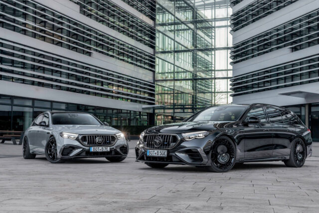 El Mercedes-AMG E 53 viene en Sedan y Wagon Guises. Ambos están disponibles para actualizaciones de brabus. Su paquete de actualización PowerXtra B53 sube la salida del híbrido y turboalimentado de seis cilindros de 3.0 litros a 700 hp, lo que permite un sprint 0-62 de solo 3.6 segundos y una velocidad máxima de 174 mph. Una transmisión de desplazamiento de velocidad de nueve velocidades hace una transición suave, mientras que los ajustes exteriores como un nuevo alerón delantero, tubos de escape de cromo negro y las ruedas de aleación de alta gama Brabus Platinum Edition le dan al viaje un aspecto deportivo adecuadamente deportivo.