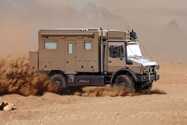 El Mercedes-Benz Unimog se encuentra entre los todoterreno más resistentes y capaces del planeta. Lo que la convierte en la plataforma ideal para construir una caravana terrestre. Eso es exactamente lo que Armadillo ha hecho con el Crawler S. Está impulsado por un motor turboalimentado diesel de 5.2L que produce 231 caballos de fuerza, acoplado a un sistema 4×4 altamente capaz. Dentro de la cabaña de fibra de carbono, hay un baño, cocina, un área de alimentación que se transforma en una cama individual y una cama doble. Un paquete de baterías de fosfato de litio-hierro alimenta cosas cuando está fuera de la red, que es exactamente donde este vehículo debe ir.