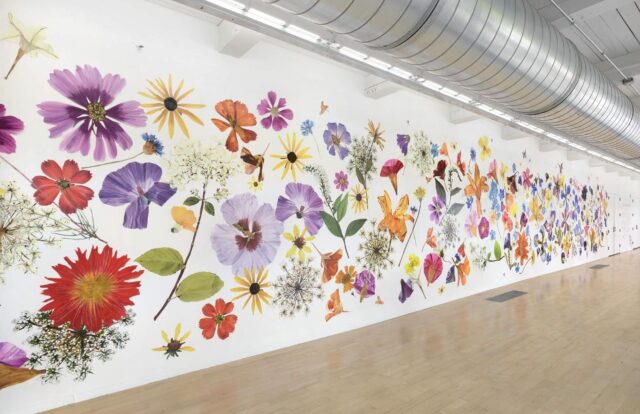 Celebrando la diversidad y el dinamismo de las flores, la pieza explora ideas sobre la creación de lugares y el paso del tiempo. “Para Glovinski, el jardín es una metáfora del tiempo colapsado y los recuerdos perecederos”, dice un comunicado de exhibición. Junto con Sarton, el artista también se basa en el amor de la poeta Emily Dickinson por las plantas, canalizando reflexiones literarias sobre la conexión con los placeres simples y el caos sublime de la naturaleza.