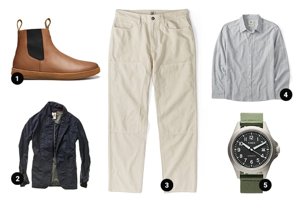 Te diriges de la ciudad durante el fin de semana con amigos. Empacó la luz, pero se marcó en lo esencial: ropa informal cómoda que lo mantiene afilado desde el desayuno en la ciudad hasta relajarse alrededor de una niñera por la noche.