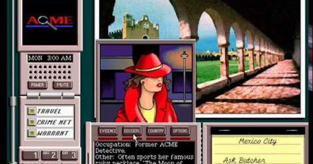 En su núcleo, ¿En qué parte del mundo está Carmen Sandiego? fue un juego de geografía. Los jugadores asumieron el papel de un detective novato que trabajaba para la agencia de detectives de ACME, persiguiendo a Carmen y su colorido elenco de secuaces Vile (Villain International League of Evil) en todos los continentes. Cada nueva pista arrojó cositas de importancia geográfica, cultural o histórica. Los niños pueden comenzar siguiendo a un sospechoso de Egipto porque mencionaron al Nilo, luego se dirigen a Brasil después de enterarse de la música de Samba. La mecánica era simple, pero la verdadera magia vino de cuán sin problemas el juego combinó el juego con el aprendizaje.