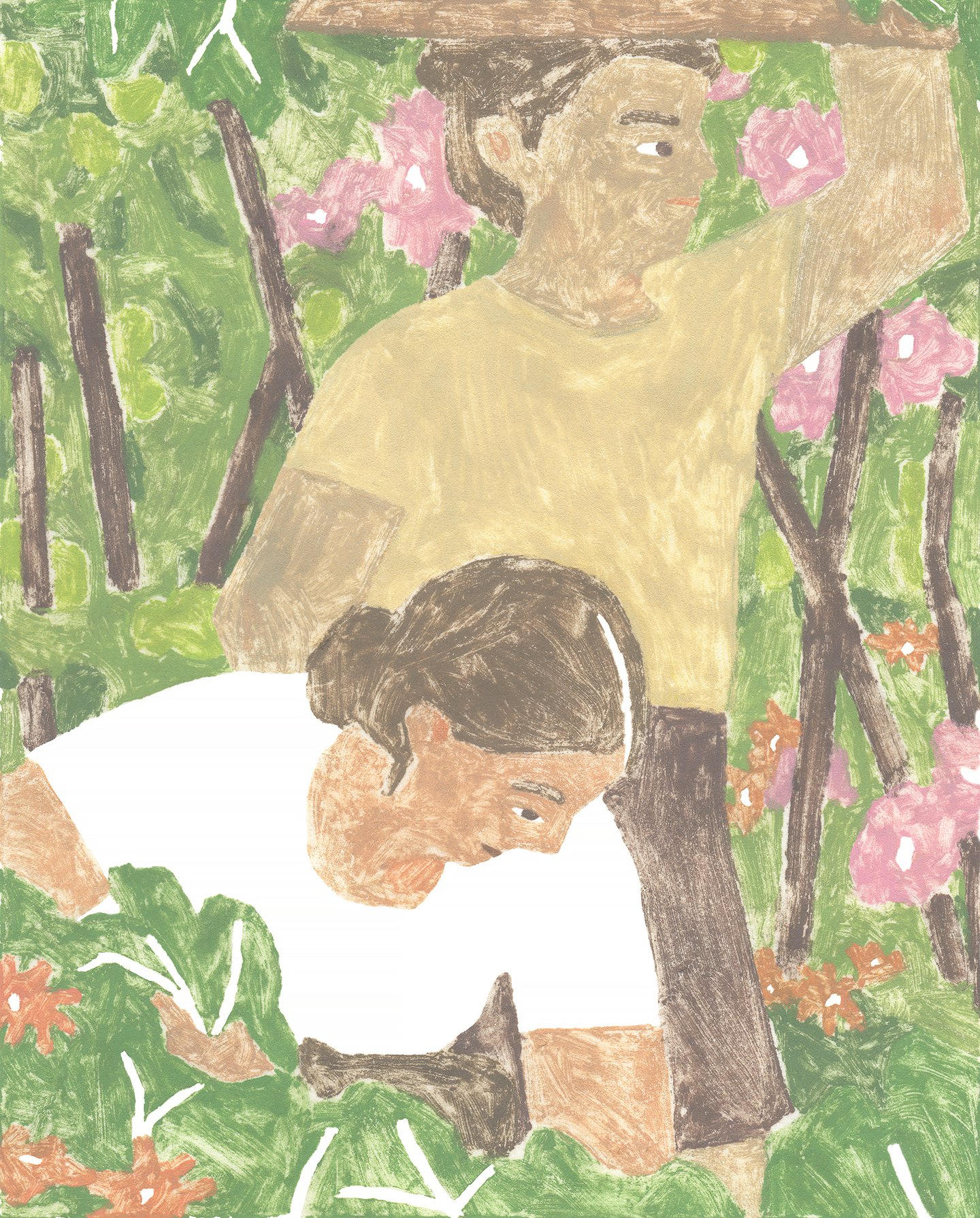“Nunca he sido alguien para dibujar en todas partes”, dice la ilustradora Laura Coutinho. Sus dibujos suaves y soleados de escenas al aire libre se sienten inmersivas, pero de hecho están informados por fotografías y solo más tarde se convirtieron en impresiones. Este banco de imágenes, de los “innumerables detalles que encuentro”, es un punto de referencia para todos los pequeños detalles que componen las escenas en capas de Laura: “Flores, luces y colores, las formas de montañas y árboles, manos de personas y posturas”.