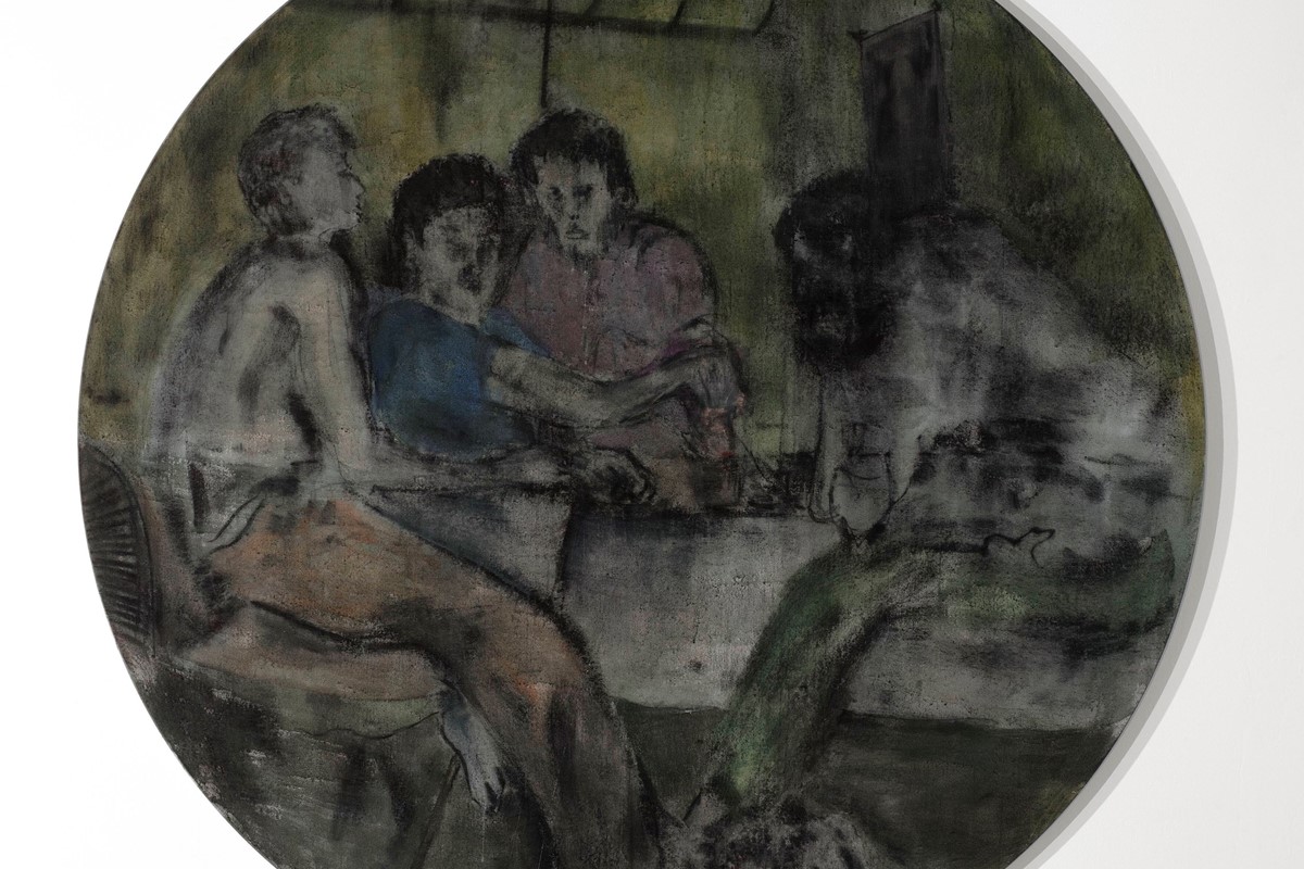 En el estudio, las pinturas de Leotaud a menudo comienzan con imágenes encontradas, desde imágenes de películas hasta iconografía religiosa y fotografías o escenas personales de memoria. “Algunas imágenes son personales”, dice. “Otros provienen de películas como Edward Yang's Un día de verano más brillante (1991). Una pintura es una escena justo antes de que el personaje principal mate a la chica que ama ”. Escenas bíblicas Al igual que Judas besando a Jesús también se hace referencia, no por su significado religioso sino por su poder narrativo. “Si él (Judas) hubiera esperado un poco más, habría visto la resurrección. Pero no podría. Ese tipo de momento, el momento justo antes, es a lo que sigo volviendo en las pinturas”. Estos momentos 'justo antes' animan el peso emocional de la exposición. Las obras son figurativas pero resisten la claridad, como si retuviera deliberadamente la comprensión completa. “Las pinturas mismas llevan esa sensación de ambigüedad”, dice Leotaud. “No estoy tratando de deletrear todo … Todos traen sus propias interpretaciones y eso me gusta”. Su abrazo de contradicción es fundamental para su práctica artística: “Es parte de la lucha: cómo decir algo y ser entendido, pero tampoco se entiende completamente”.