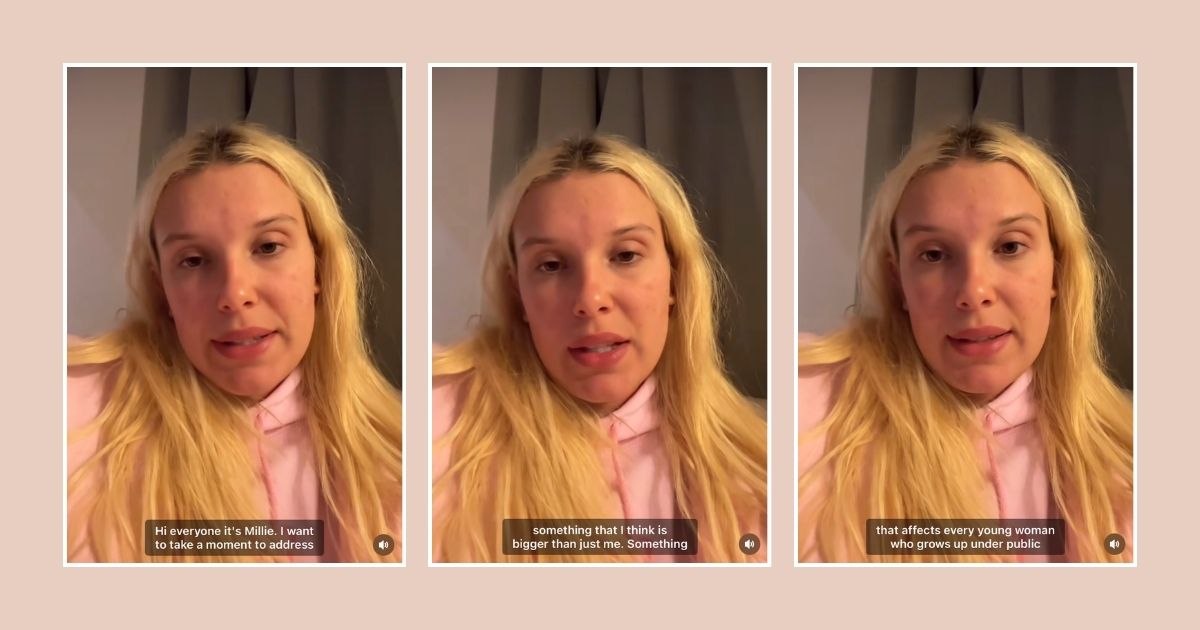 Tal vez porque vimos crecer a Millie, las personas se sienten con derecho a comentar sobre su aspecto. Pero su hombre Cosas más extrañas Los coprotagonistas pueden envejecer y cambiar sin que cada uno se convierta en un titular. Las relaciones parasociales que los medios y los fanáticos crean con las celebridades no son reales, pero borran a la persona real detrás del escrutinio. No conoces a estas personas. No tienes un reclamo de sus decisiones. Y aunque han pasado décadas desde que TMZ ridiculizó a Britney por afeitarse la cabeza, los medios todavía están tratando a las mujeres jóvenes y sus cuerpos como nada más que clickbait. Los medios de comunicación no ven a las mujeres como personas sino como conductores de tráfico. Estas historias no solo dañan a las celebridades, sino que dañan a las mujeres en general. Millie hizo su video “No solo para mí sino para cada joven que merece crecer sin temor a ser destrozada por simplemente existir”.
