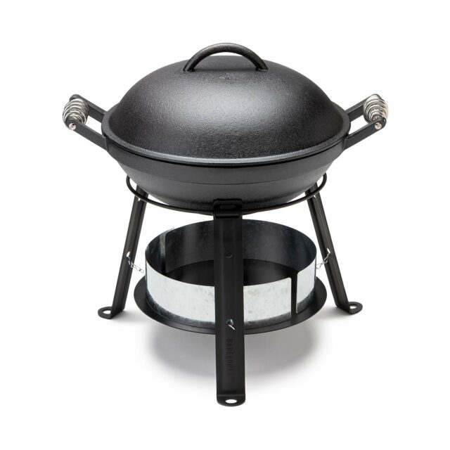 Al acampar, ya sea en una tienda de campaña o fuera de un remolque o RV, es esencial ahorrar espacio. Capaz de servir como una parrilla tradicional, wok, sartén y más, la parrilla de hierro fundido todo en uno de Barebones es una solución óptima. Todos los diversos componentes, incluida la base y la tapa de hierro fundido previo, la rejilla de la parrilla, la altura, el soporte de trípodes y la bandeja de carbón en la base y la tapa para la conservación y conveniencia del espacio. El carbón se puede usar en la base con la rejilla para la acción de parrilla tradicional, la bandeja debajo se puede usar para convertirlo en una olla de olla lenta o lenta, y la base del trípode se puede usar sin la bandeja directamente sobre el fuego.