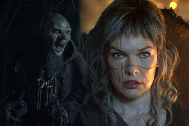 En las tierras perdidas se retrata como una épica de acción de acción, aunque lo épica que realmente se siente podría depender del espectador. Ambientada en un futuro distópico y apocalíptico donde existen magia y monstruos, una bruja llamada Gray Alys (Milla Jovovich) solicita la ayuda de una guía, Boyce (Dave Bautista), para ayudarla a viajar a las peligrosas tierras perdidas para encontrar un hombre lobo. La estética de la película se siente como una película de fantasía-horror directamente de finales de los 90 o principios de la década de 2000, con momentos melodramáticos y CGI cursi. En realidad es un poco divertido.