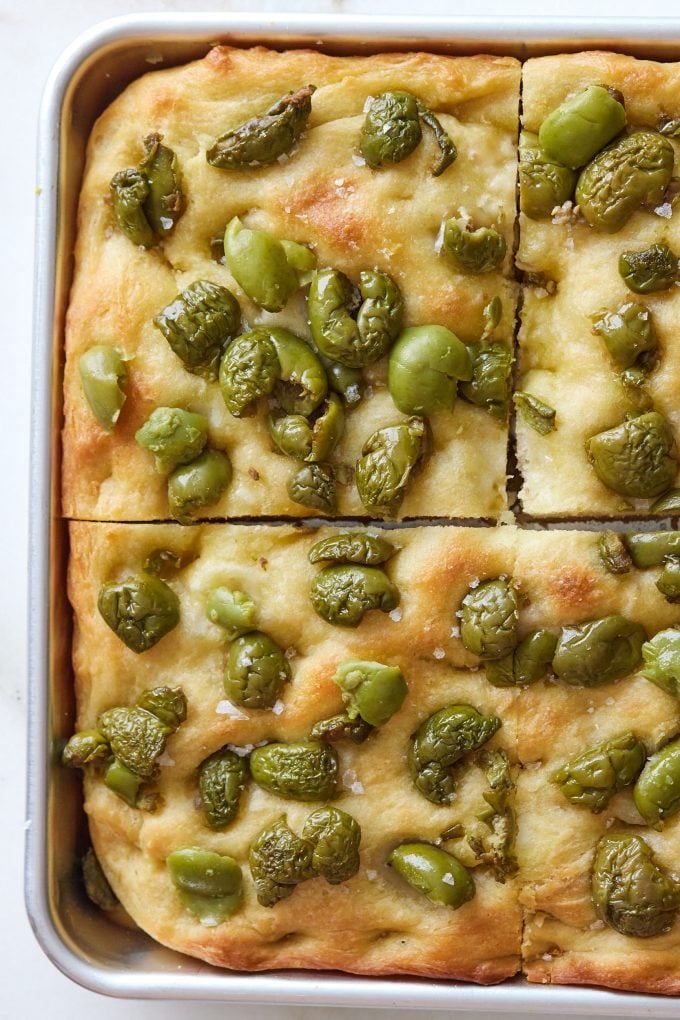 El resultado? Pan aireado y masticable que no puedes dejar de comer. La focaccia de sal marina y aceite de oliva sería el lado perfecto para cualquier cena; Y no puedo esperar para servir la versión de Olive en nuestra próxima noche de juegos. Podrías combinarlo con vino blanco, uvas y queso para una propagación sabrosa y discreta.