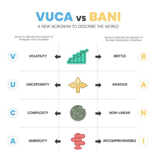Quizás el mayor error en la estrategia no es atender la naturaleza del riesgo integrado dentro de él. Por ejemplo, las empresas y sectores en todo el mundo han sido sorprendidos por las guerras comerciales, asumiendo más certeza sobre el comercio de lo que está justificado. Muchas naciones tenían acuerdos comerciales con los Estados Unidos que no fueron confirmados. Lo que se ha hecho evidente es que no solo los acuerdos comerciales son vulnerables, sino que el estado de derecho en sí mismo, como lo señalan William Roberts, un corresponsal estadounidense de la Asociación Internacional de Abogados, en noviembre de 2024. Los mecanismos destinados a proporcionar controles y equilibrios en un sistema no funcionan de manera confiable. Con “los aranceles de Trump inclinando a la economía estadounidense peligrosamente cerca de una recesión”, como señaló el escritor de Forbes, Derek Saul, es impresionante presenciar la incapacidad de las empresas, los consumidores, los políticos, los burócratas y una variedad de partes interesadas para influir en las decisiones. Debido a que las guerras comerciales han revelado que solo unas pocas personas pueden amplificar Vuca y Bani, la estrategia ya no puede ignorar tales riesgos. Aunque la pandemia Covid-19 reveló que tal amplificación existía en los sistemas en general, a menudo se denominaba un evento de “cisne negro”, capturando que el evento era raro y difícil de predecir, pero tenía un impacto significativo. Si bien estos eventos pueden ser difíciles de predecir, ya no son raros. La lección clave es que la estrategia debe ser resistente a los choques, y las organizaciones deben ser ágiles para adaptarse.