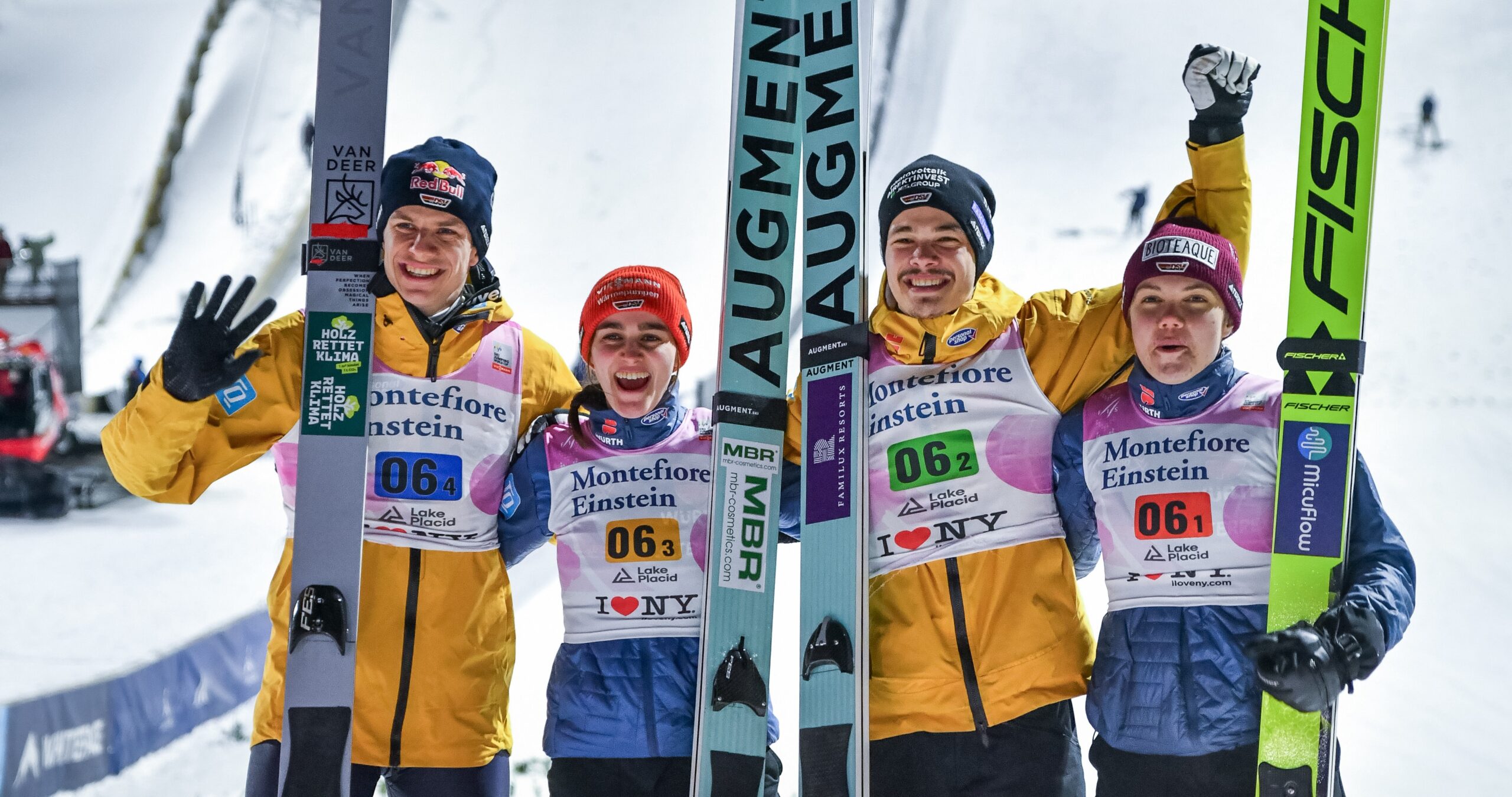 Alemania redondeó el día más ocupado de la Copa Mundial de saltos de esquí FIS a la temporada al reclamar el título de equipo mixto en Lake Placid (EE. UU.).