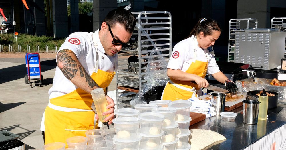 Paula y Massimo, mientras tanto, se desvían brevemente en el tipo de drama de empuje y salto que solía definir Top chef Team-Ups. Massimo comenzó este episodio profundamente molesto consigo mismo (“Trabajé duro; no trabajé elegante“), Así que no es sorprendente verlo tan nervioso esta semana. Preocupado de que su costilla no se cocine todo el tiempo, él quita la tapa a pesar de las protestas de Paula. Ella está comprensiblemente enojada, ya que Katianna llame su ojo para compartir en el ritual silencioso y universal de” ¿Puedes creer a este maldito? ” Para su crédito, Massimo parece saber que sobrepasó, disculpándose con Paula en su confesionario conjunto (“Lo siento, era un imbécil”).
