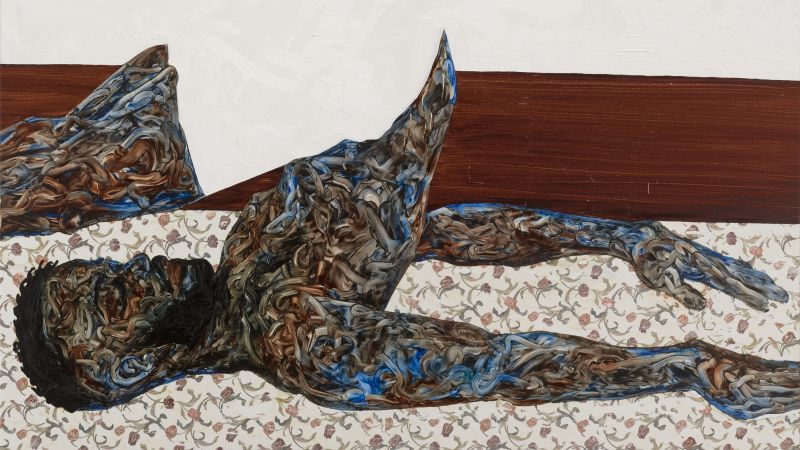 En Gagosian en Londres, los nuevos autorretratos, incluida una de sus pinturas más grandes hasta la fecha, en las que Boafo se reclina en una cama, envuelta en patrones florales y rodeado de plantas, tienen una conmoción adicional. Actúan como “un recordatorio de las cosas que quiero hacer”, dijo. “Es un recordatorio para tomar un descanso y hacer yoga. Tómese un descanso y vaya en bicicleta. Tómese un descanso y vea bonito y hermoso. Tómese un descanso y, a veces, quédese en casa y relájese”.